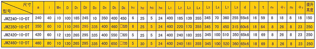 蝸輪蝸桿減速機(jī)規(guī)格主要有JWZ200\JWZ2410\JWZ350\JWZ460等,根據(jù)澄清池大小選擇合適的蝸輪箱。以下數(shù)據(jù)僅供參考: