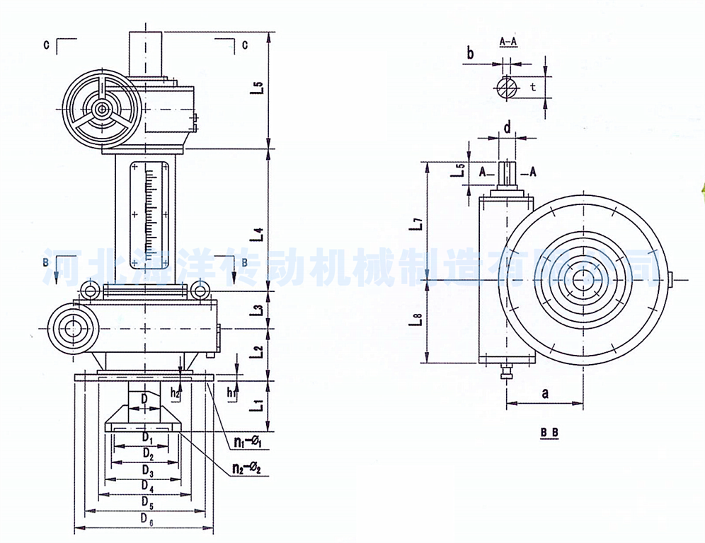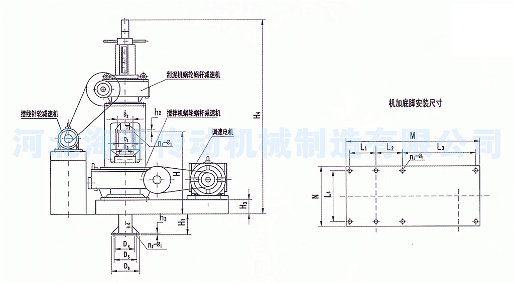 擺線(xiàn)針輪減速機(jī)、調(diào)速電機(jī)通過(guò)鏈輪鏈條、三角帶輪帶動(dòng)或直聯(lián)。該設(shè)備為低速輸出傳動(dòng)裝置,輸出扭矩大、噪音低、運(yùn)行平穩(wěn)、無(wú)泄漏。主要用于水處理設(shè)備排泥機(jī)械配套產(chǎn)品。減速機(jī)有手動(dòng)提升、手電兩用提升的等形式,可根據(jù)用戶(hù)要求增加安全剪切銷(xiāo)及彈簧式過(guò)扭矩自動(dòng)保護(hù)裝置(JGZ4500),確保整套設(shè)備安全運(yùn)轉(zhuǎn)。