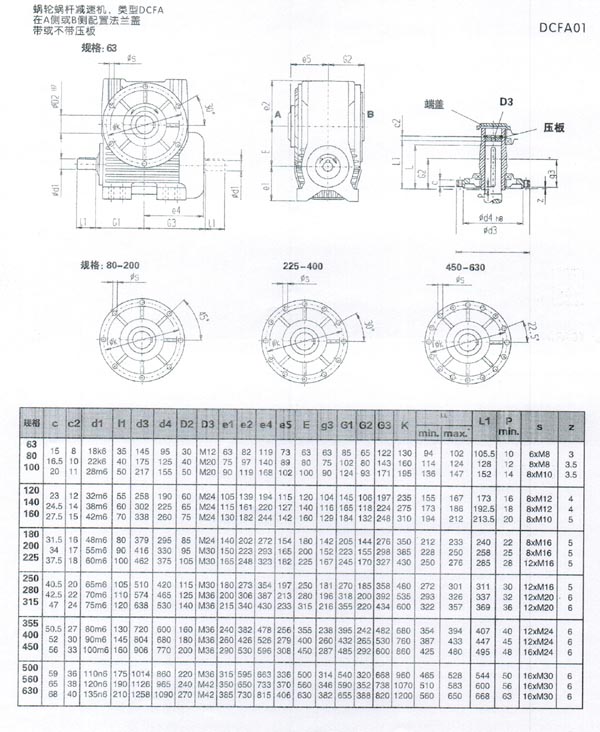 CFA蝸輪蝸桿減速機具體安裝尺寸如下: