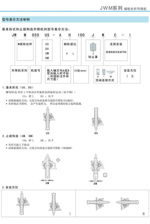 JWM絲桿升降機(jī)基本形式、止旋構(gòu)造及型號(hào)表示方法