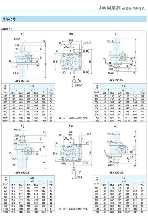 減速機|蝸輪絲桿升降機-JWM升降機150外形尺寸圖-海洋傳動