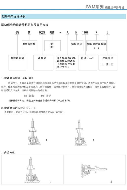 JWM絲桿升降機基本形式、止旋構造及型號表示方法