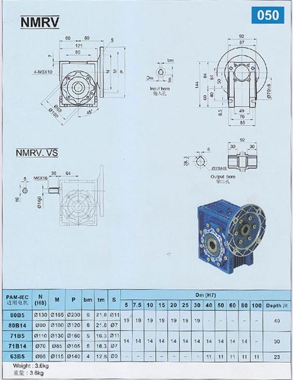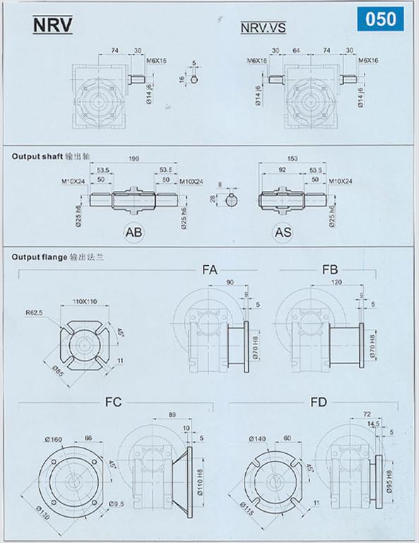 NMRV50減速機|RV50減速機-NMRV/RV50蝸輪蝸桿減速機安裝尺寸-海洋傳動